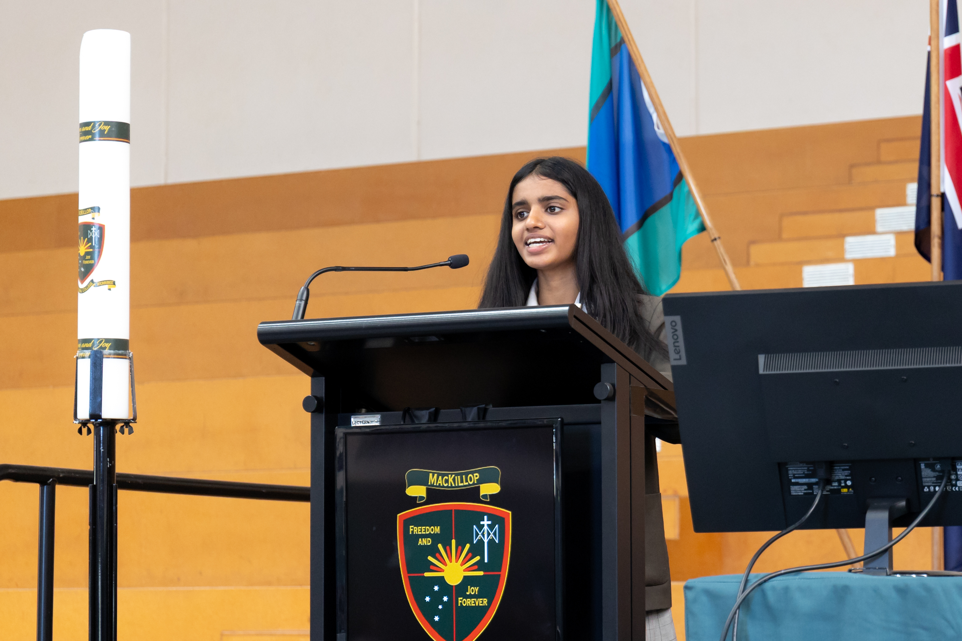The Assembly began with the procession of the College Candle, the singing of the College Song, an Acknowledgement of Country and the College Prayer, grounding the community in faith and the traditions of St Mary of the Cross MacKillop.