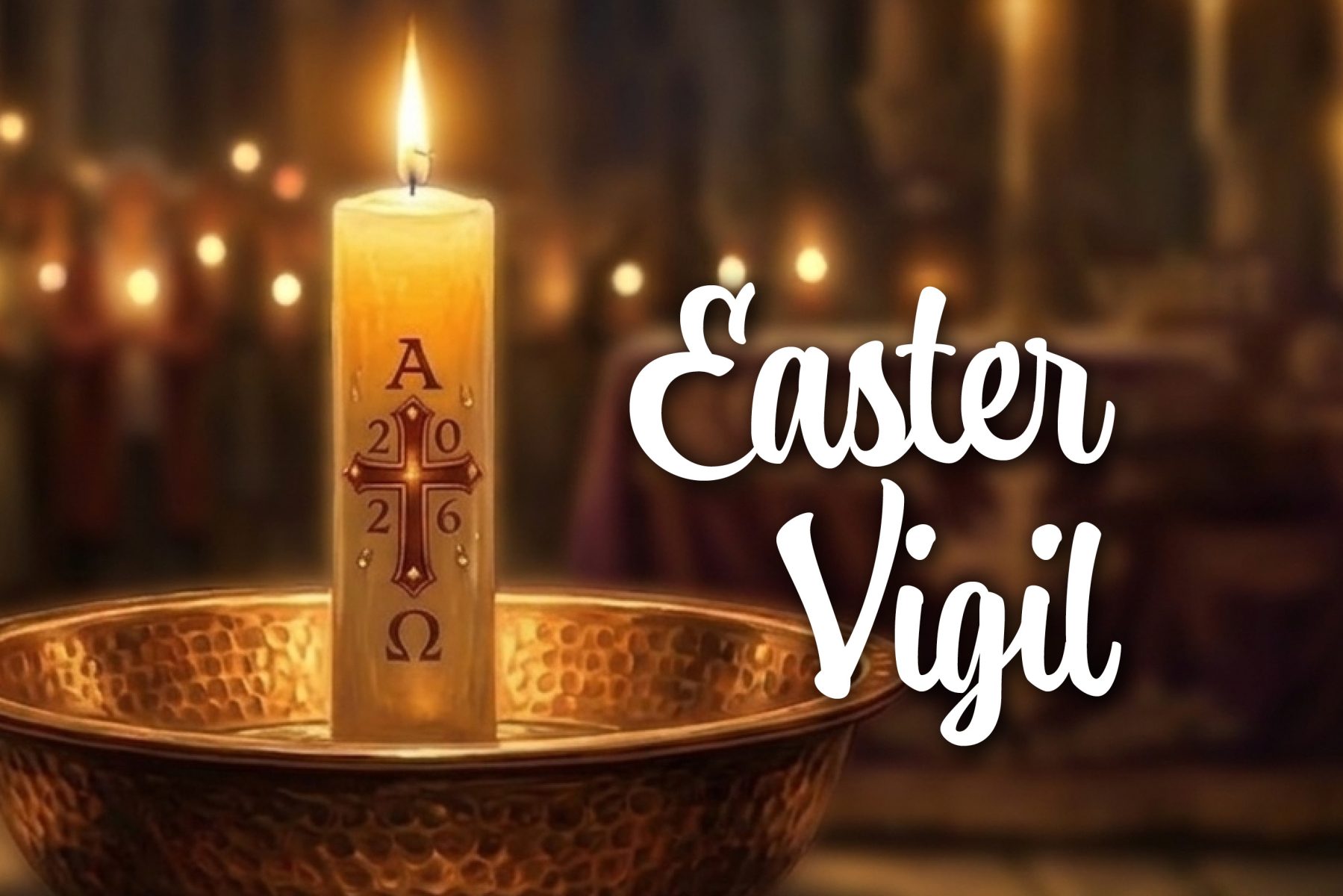 Easter fire, we too experience the darkness of the tomb. We joyfully light our candles from the new fire of the 2026 Paschal Candle, and we enter into the Resurrection mystery.